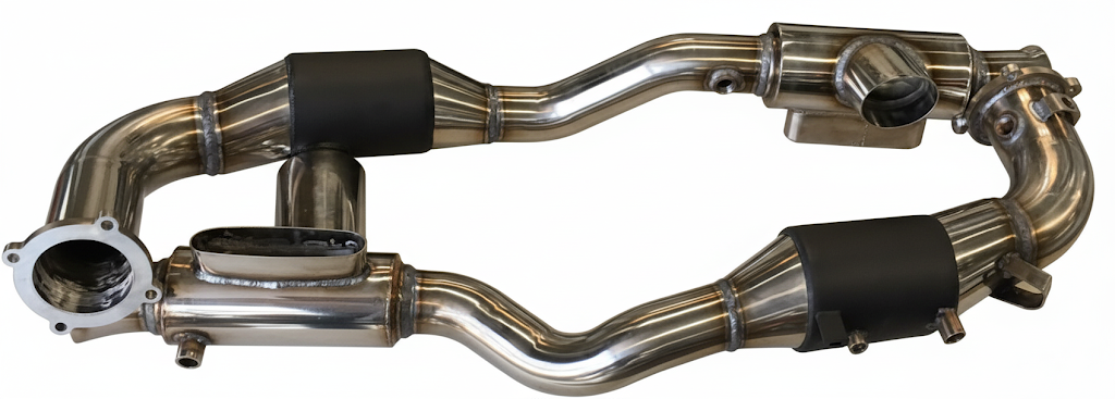 Their design scrupulously respects the original interfaces and dimensions, guaranteeing direct installation without any modification, in place of the existing catalysts (between turbos and mufflers).