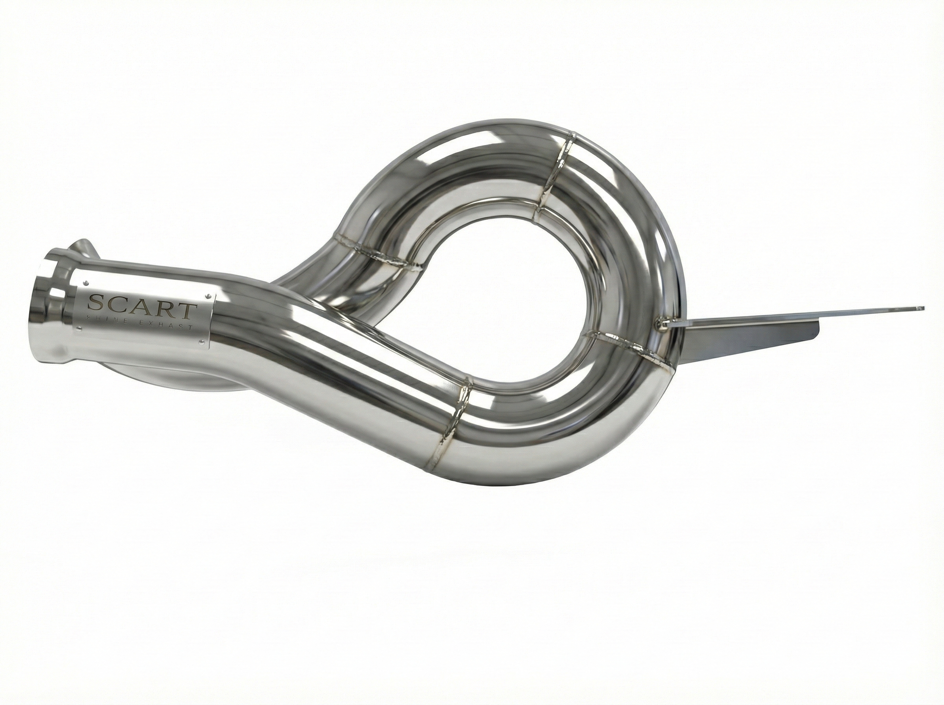 Le col de cygne est l'un des 4 premiers échappements à avoir été mis au point en 2003. Et comme les bonnes recettes, rien n'a changé depuis cette date. La longueur du tube est très importante pour que les gaz d'échappement puissent sortir sans trop ralentir. Au banc de puissance, il apporte 6cv là où un coude court en fait perdre 5 ! Sa sonorité est puissante et profonde, couplé avec un catalyseur sport, c'est le ticket gagnant pour la 964 avec 23cv en plus et un son au top.