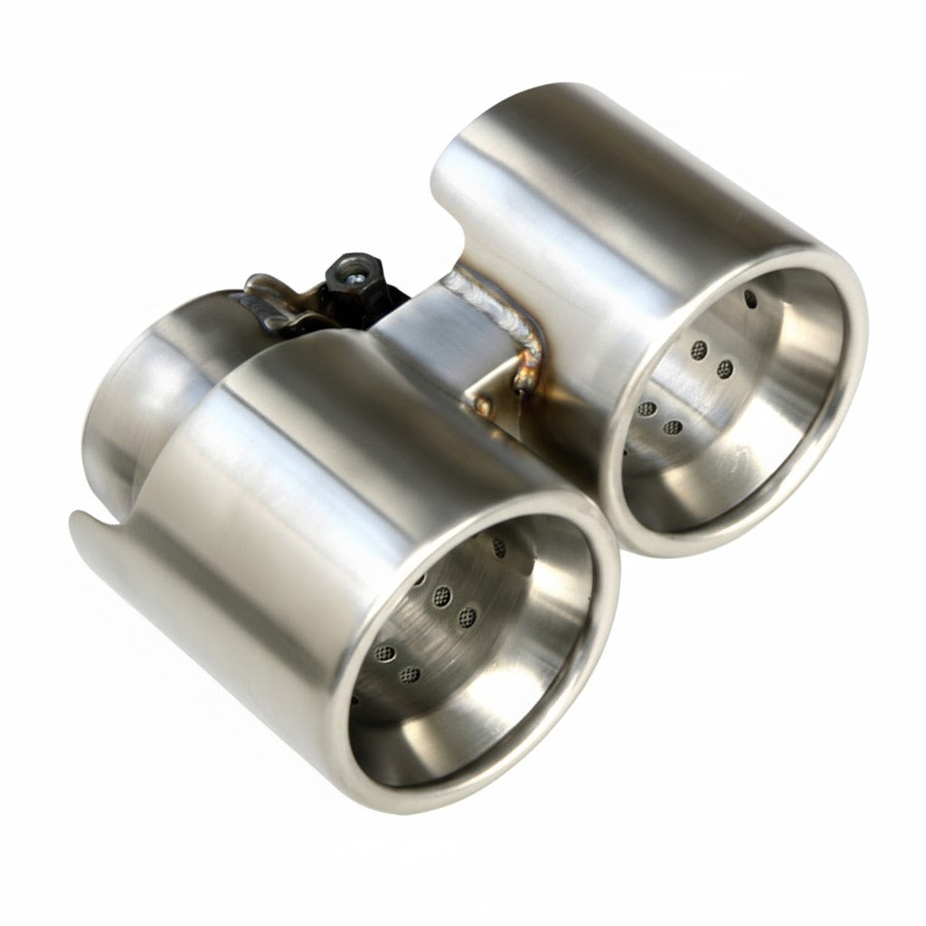 Améliorez l'esthétique de votre Porsche 997 phase 2 équipée PSE (y compris GTS) avec nos sorties d'échappement exclusives SCART. Fabriquées en inox brossé, leur design droit s'inspire des Sport Classic et Speedster, offrant une touche d'élégance unique grâce à des perforations esthétiques, sans modifier la sonorité de votre véhicule.