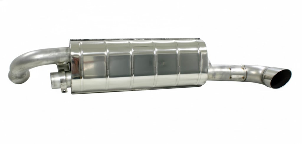 Cet échappement pour 964 remplace en un seul bloc le silencieux transversal arrière et le silencieux terminal qui se trouve dans l'aile arrière droite ainsi que la sortie. Sur le long terme c'est la meilleure solution. Car le montage tube Cup et Col de cygne est trop sonore. Et si l'on est équipé avec l'un ou l'autre, quand le second doit être remplacé, il faut nécessairement trouver une solution globale. Les 4 versions de système Cup offre tout le panel pour obtenir un son sport ou plus dynamique avec une ou deux sorties. Cette version permet le montage d'un catalyseur sport sans que le résultat final soit trop élevé.